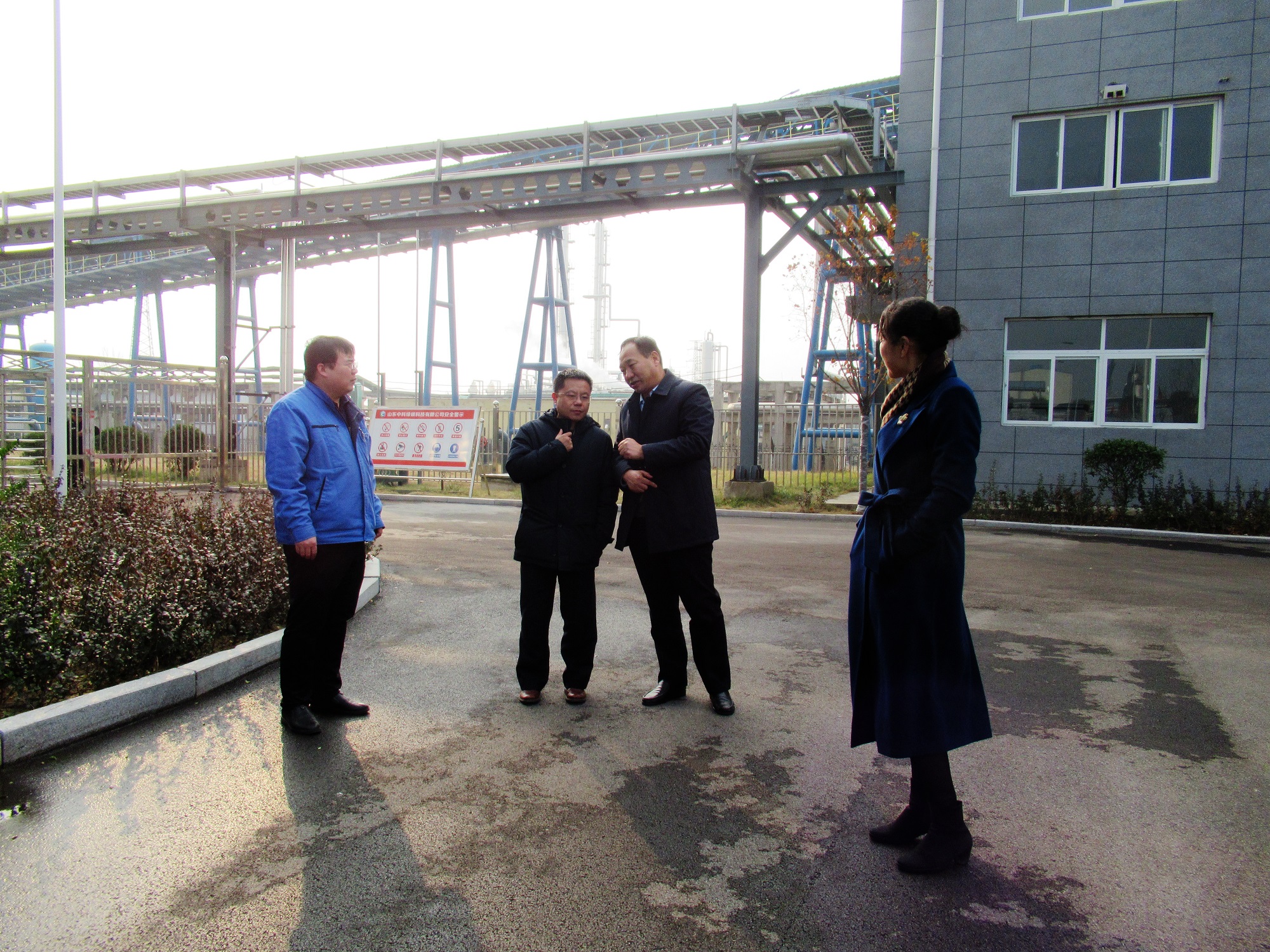 孫洪剛首先參觀了維度公司,認(rèn)真聽取老區(qū)的情況介紹,并對老區(qū)周邊狀況進(jìn)行了考察。隨后對中科綠碳科技公司進(jìn)行了參觀,聽取了DMF裝置試驗、成果鑒定、新工藝節(jié)能減排和中試平臺運行等情況。